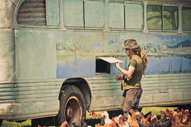 one young man, 2 dogs, 400 acres and a caravan full of chooks....